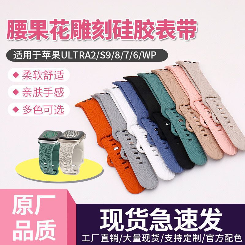 适用苹果硅胶手表表带通用时尚纹腰果花雕刻多色智能手表表带批发