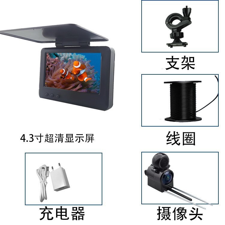 可视新款升级单面遮阳跨境水下摄像头钓鱼户外观赏套装广角超清