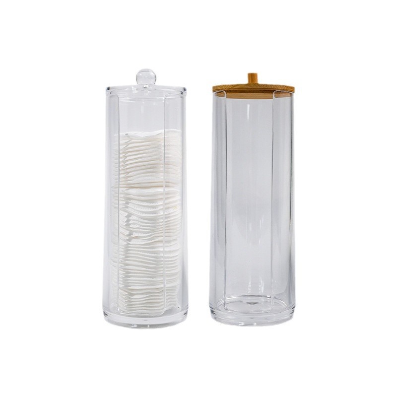 卸妆棉收纳筒圆柱形带盖防尘收纳筒容器透明桌面圆形化妆棉收纳盒
