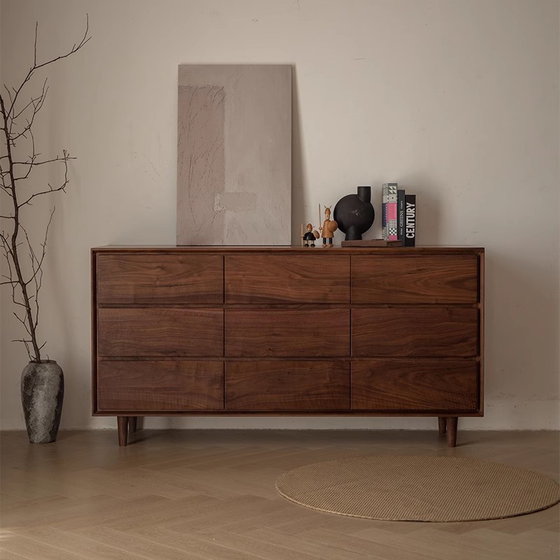 北美黑胡桃九斗柜原木储物收纳抽屉电视橱现代简约实木卧室床尾柜
