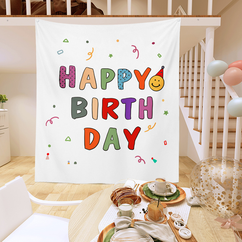 跨境生日横幅背景布 ins风网红挂布挂毯场景布置拍照装饰墙布