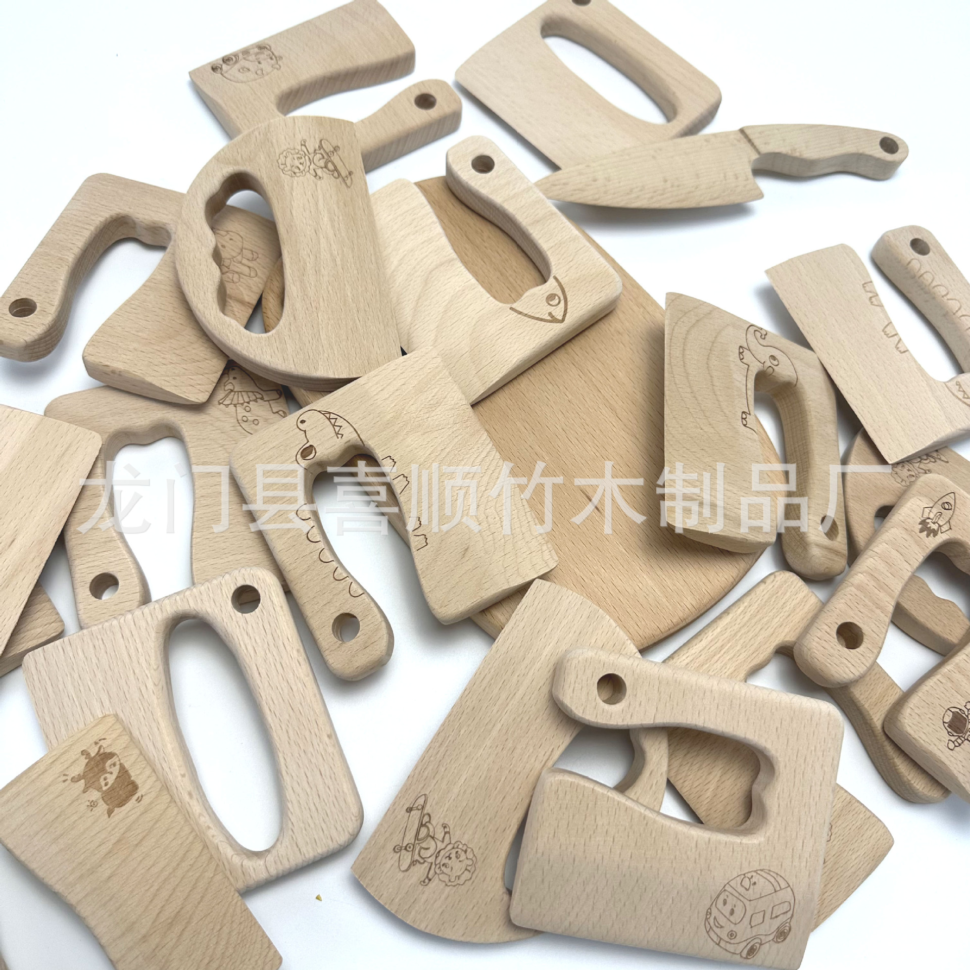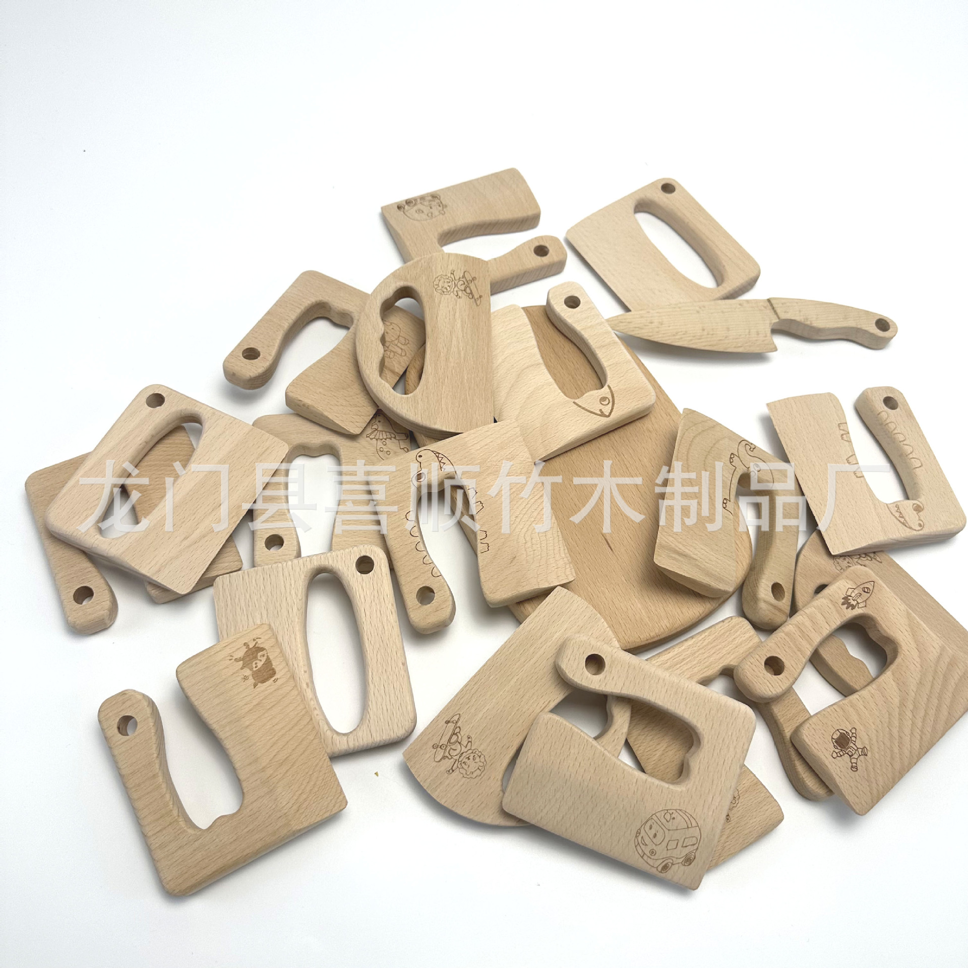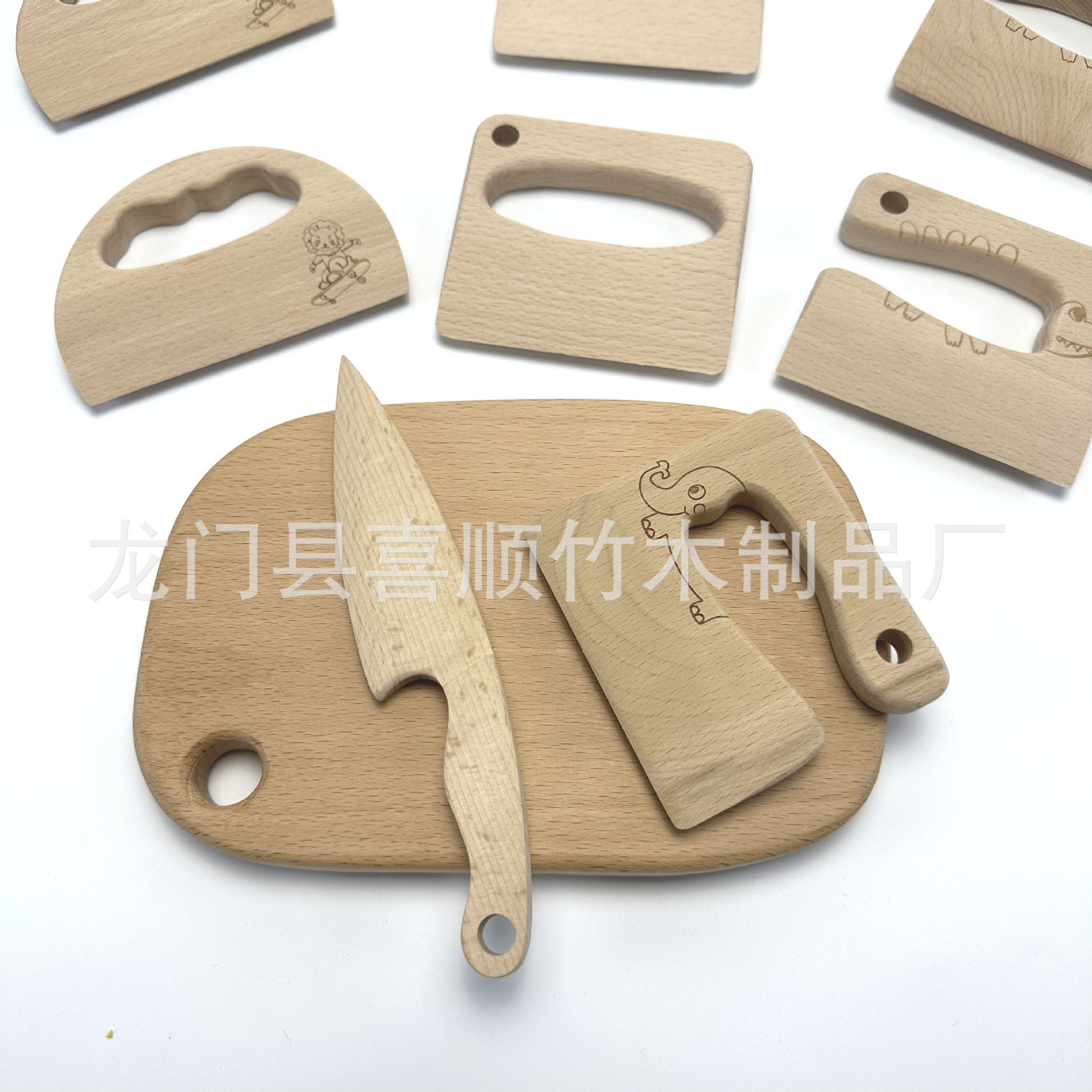 现货木制儿童玩具刀鳄鱼刀切水果蔬菜木刀DIY玩具安全厨房用具
