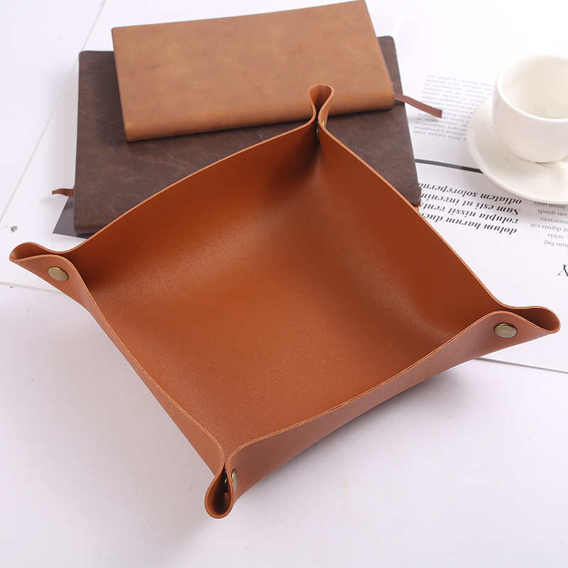 厂家供应皮革收纳盒桌面收纳托盘PU皮质首饰化妆品钥匙储物