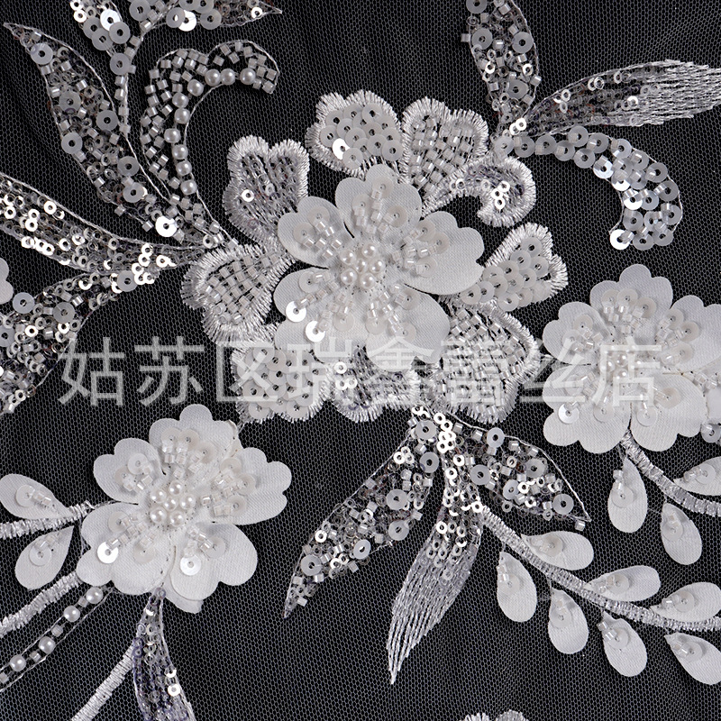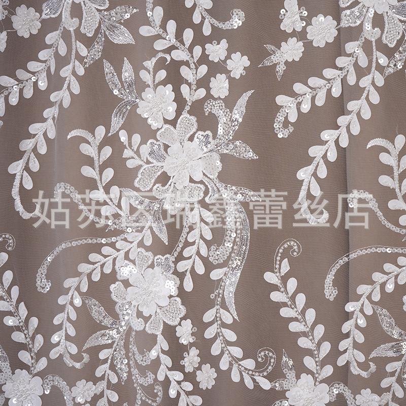 RL239珍珠亮片刺绣蕾丝面料 花边重工手工婚纱童装礼服花边面料