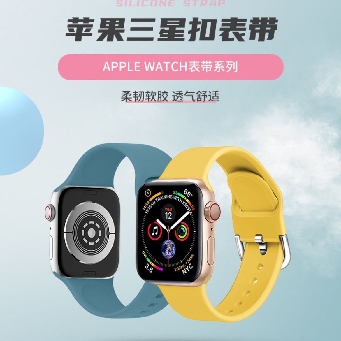 适用苹果Apple Watch手表带三星扣多色扣针智能手表硅胶表带
