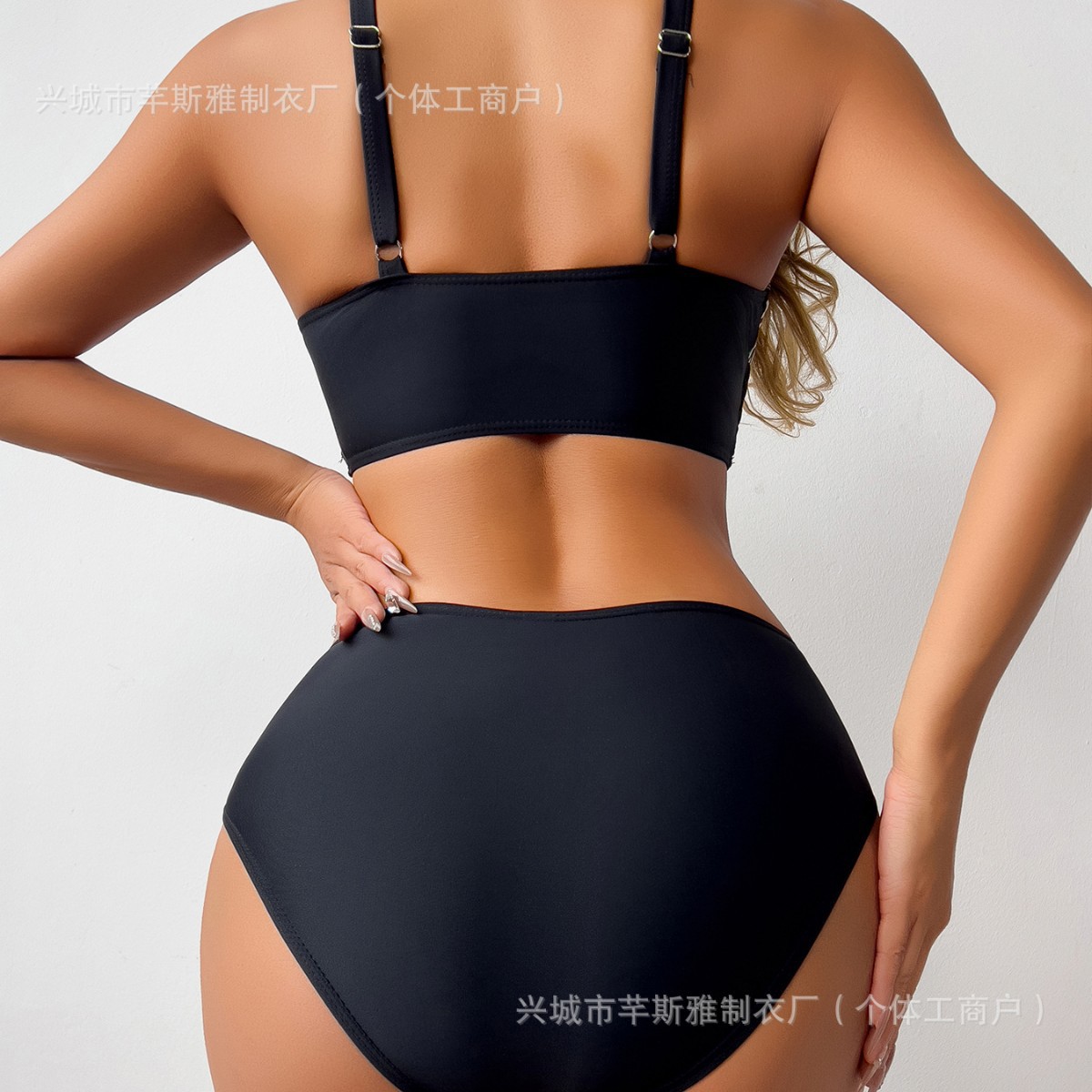 2024欧美比基尼泳衣跨境亚马逊拼色性感沙滩度假分体bikini游泳衣