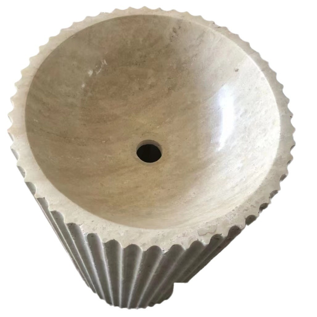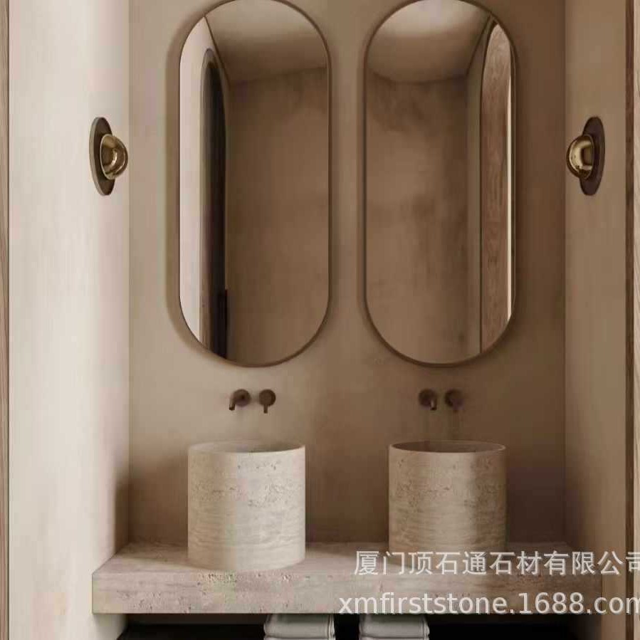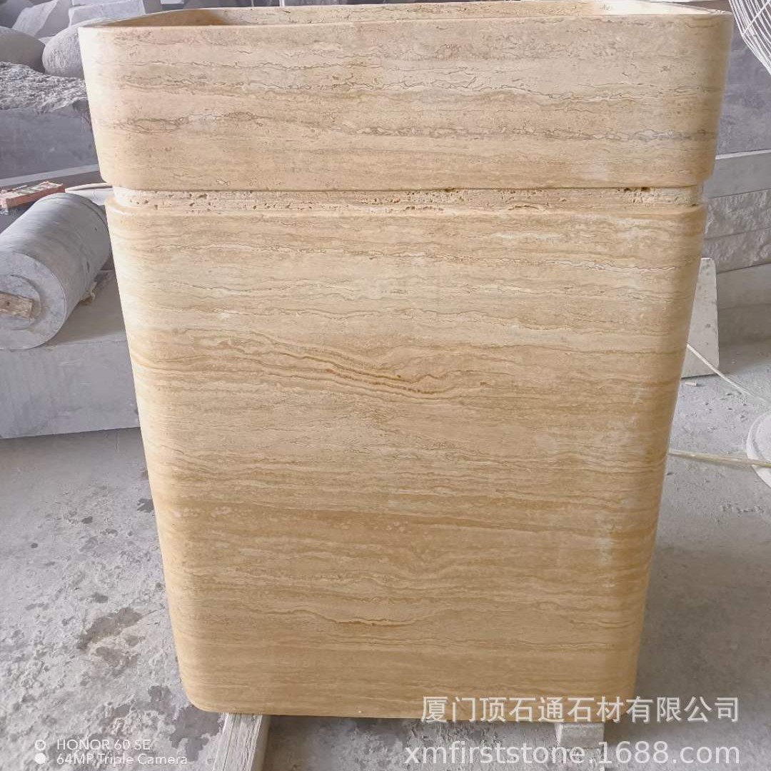 天然黄洞石大理石立柱洗手盆阳台立式艺术洗脸盆落地一体式洗手盆
