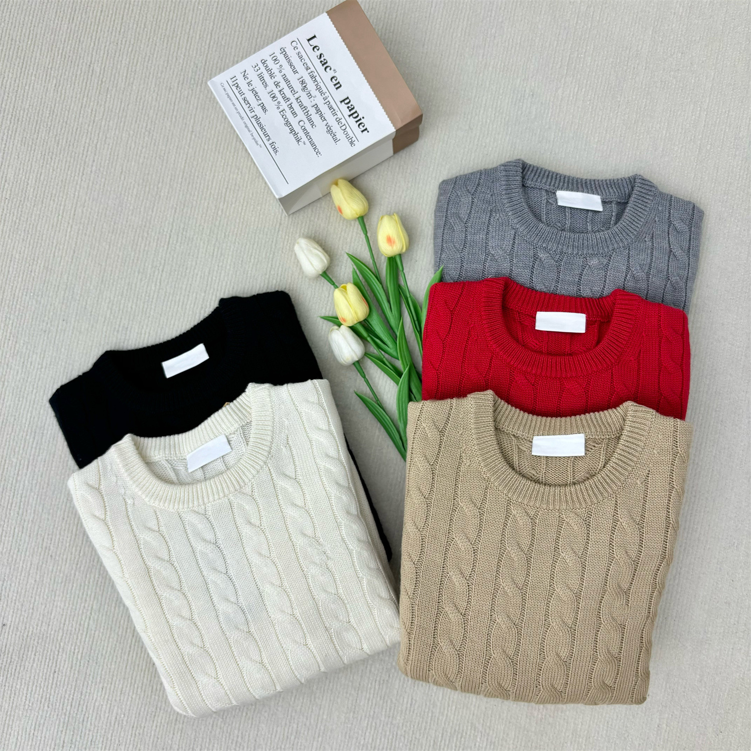 一件代发FG 经典时尚百搭圆领麻花套头羊毛毛衣2025秋冬女鳄鱼