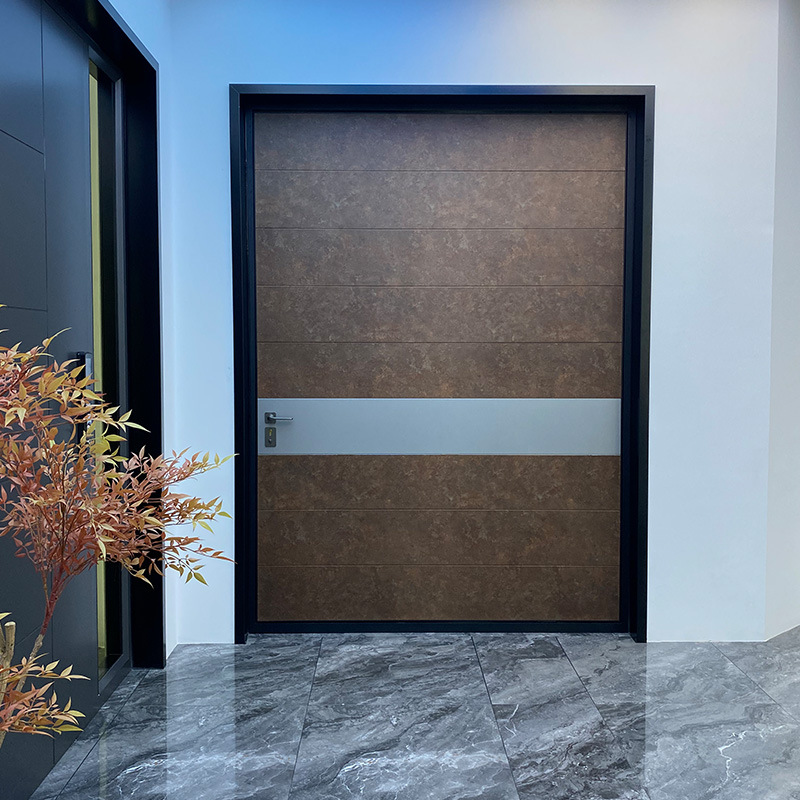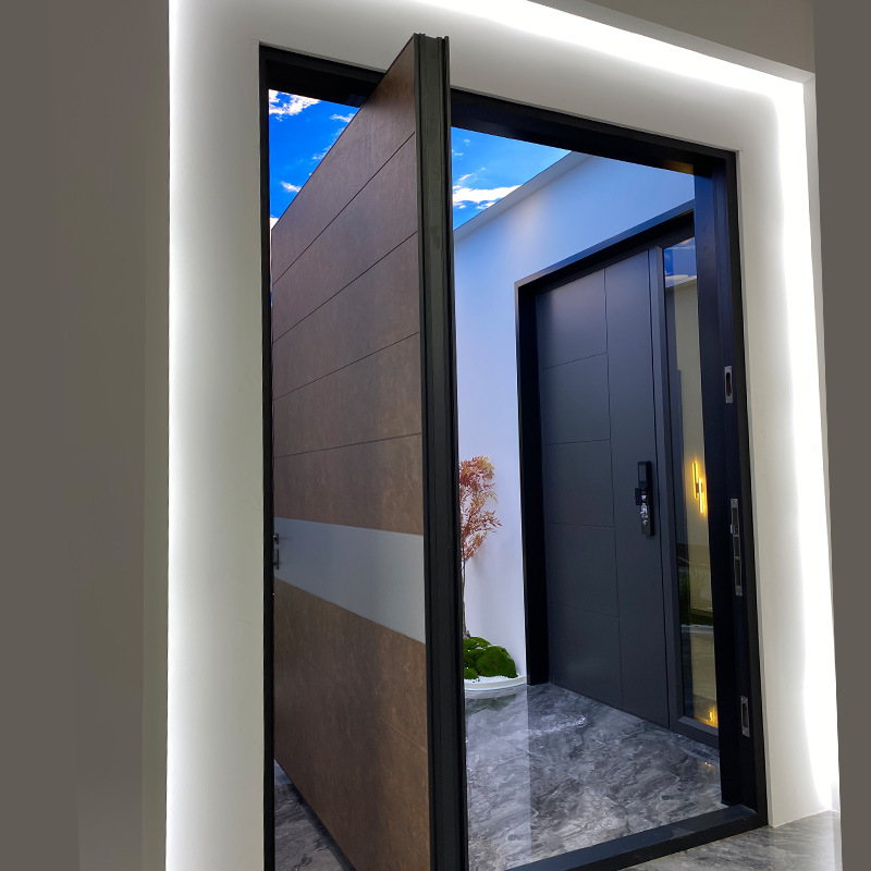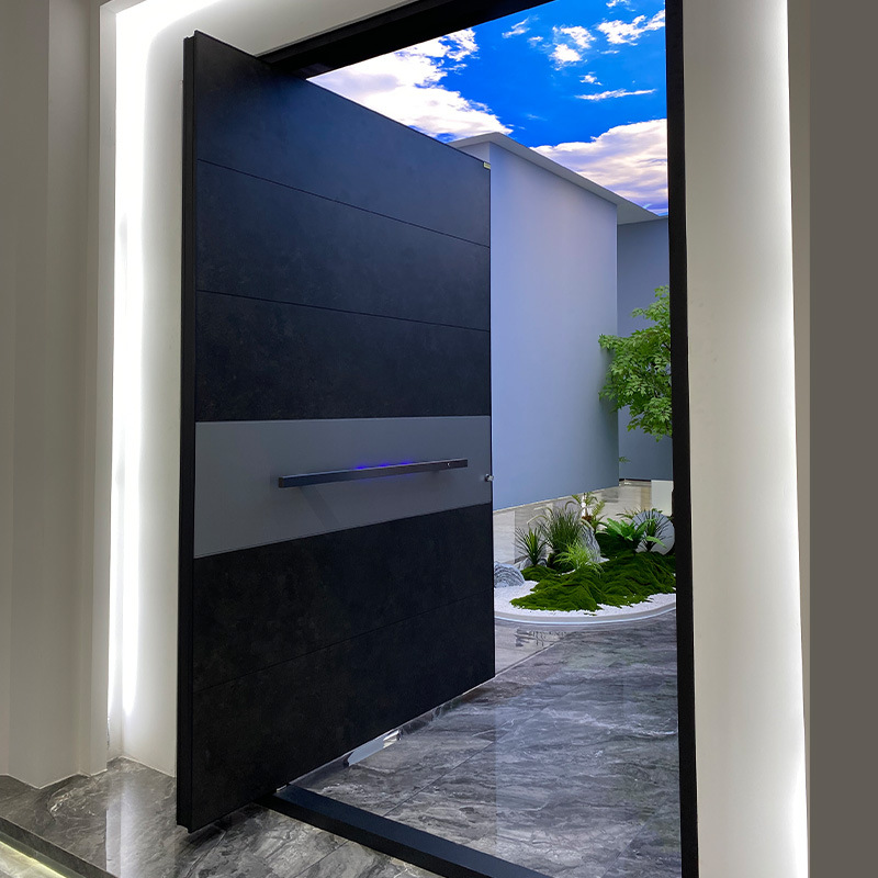 新中式偏轴大门轻奢会客室门欧美入户铸铝大门别墅大门偏轴旋转门