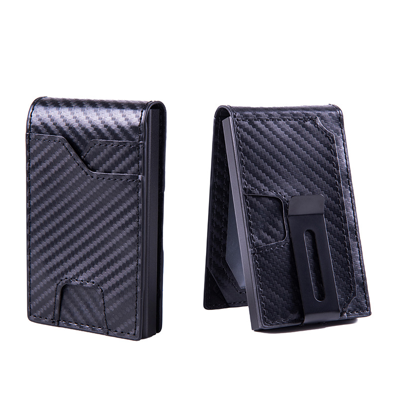 跨境热销自动式铝合金RFID卡套男士碳纤维卡包零钱夹信用卡收纳盒