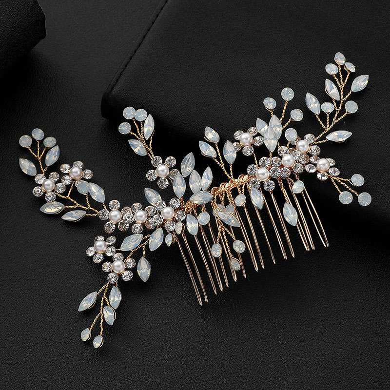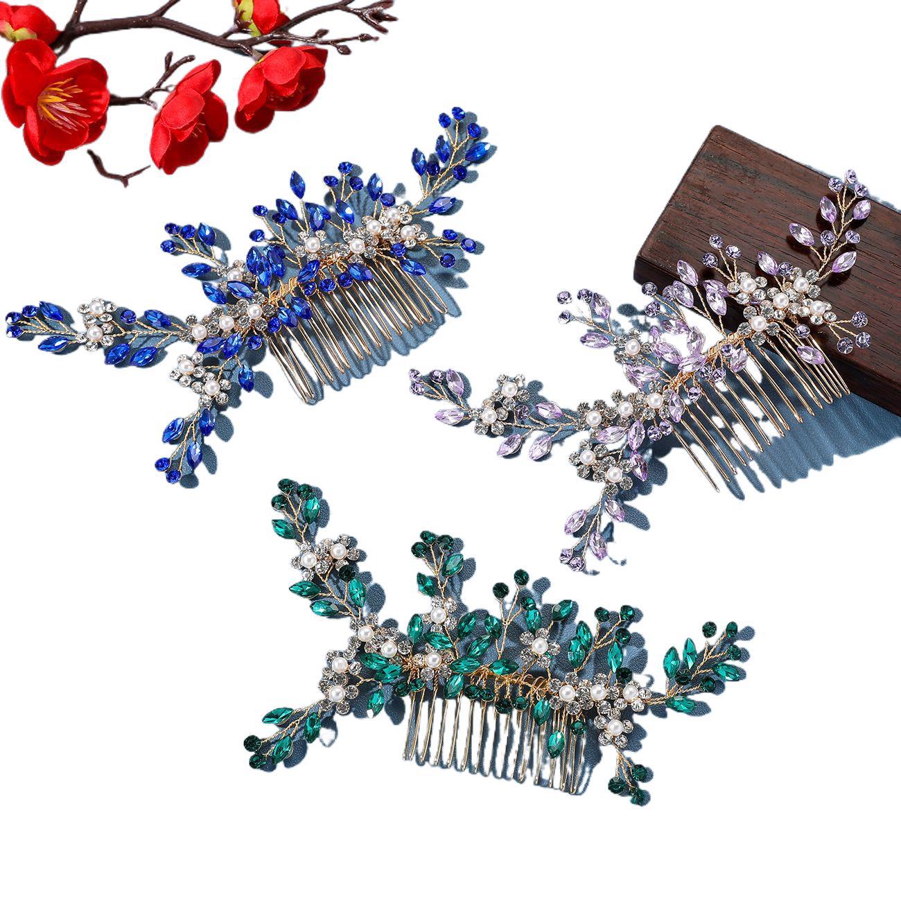 欧式新娘热销插梳头饰手工水钻花朵发梳配饰婚纱礼服盘发侧边饰品