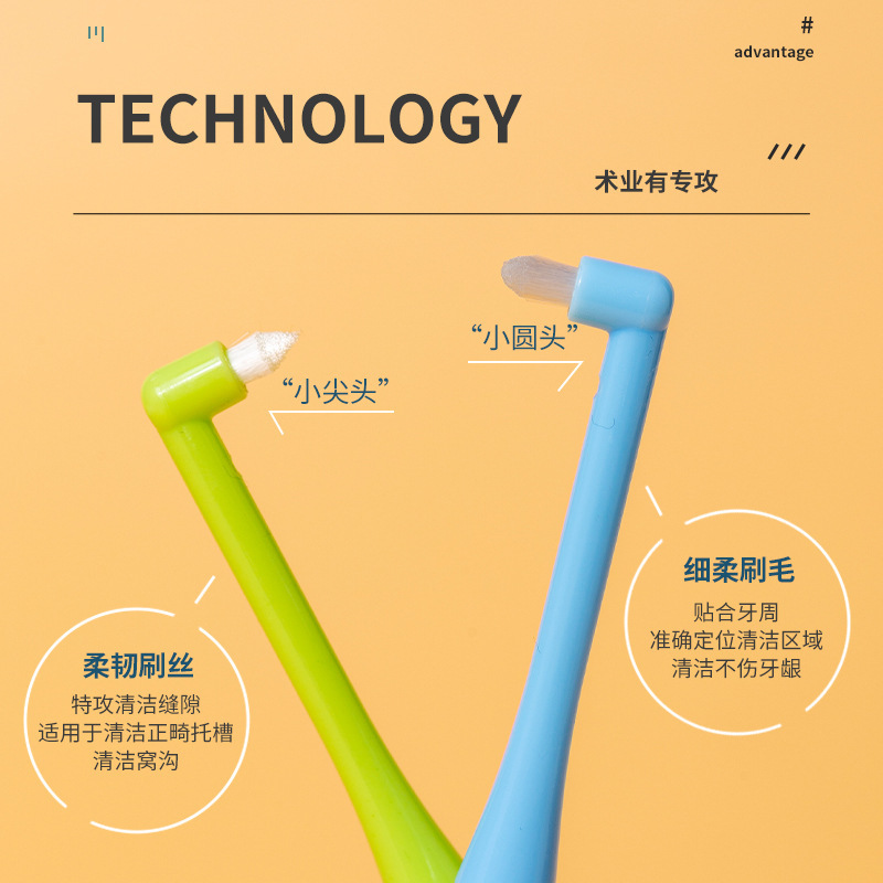 乐齿2支组合正畸牙刷软毛矫正牙齿口腔牙科单束智齿小尖头牙缝隙