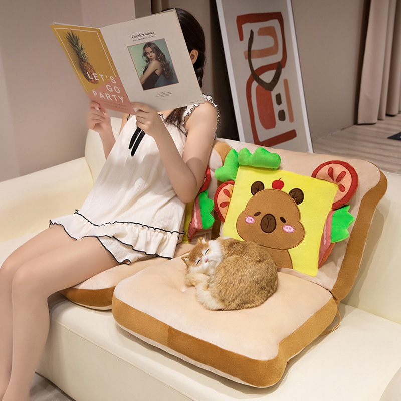卡通吐司坐垫靠背一体椅子垫办公室久坐学生宿舍连体座垫屁垫加厚