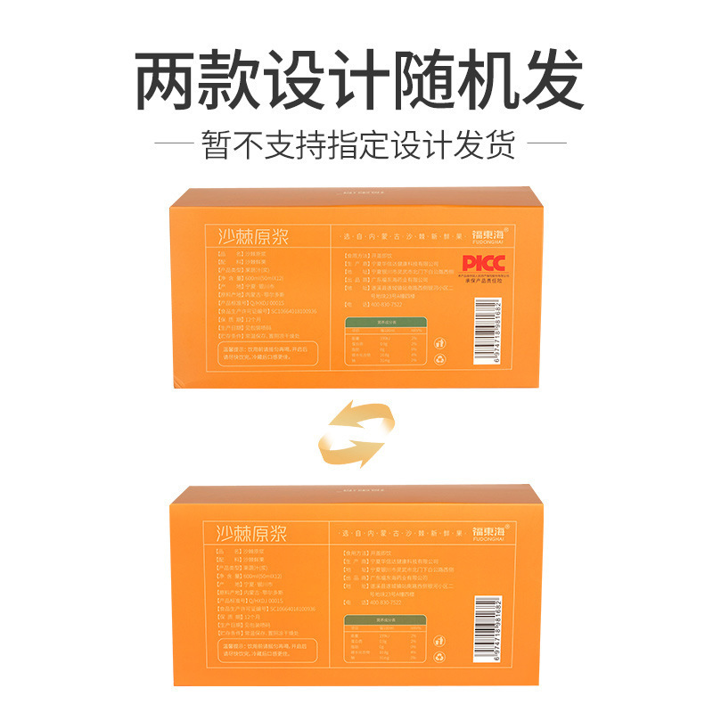 福东海沙棘原浆鲜果鲜榨内蒙古小锅沙棘原汁维生素纯原浆600ml/盒