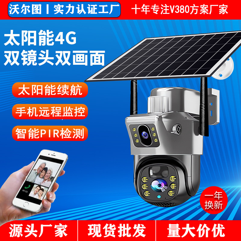 太阳能低功耗V380摄像头手机远程双画面无线WiFi高清智能监控器