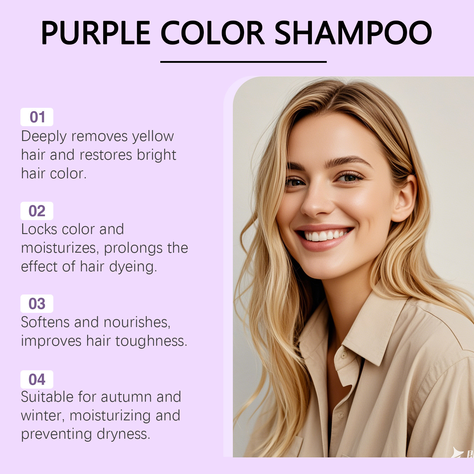 | 颜色分类 | 护发精油100ml(仅供外贸出口销售,禁止国内销售,购买等同默认免责申明 ) | 颜色分类 | 紫色洗发水100ml(仅供外贸出口销售,禁止国内销售,购买等同默认免责申明 ) |