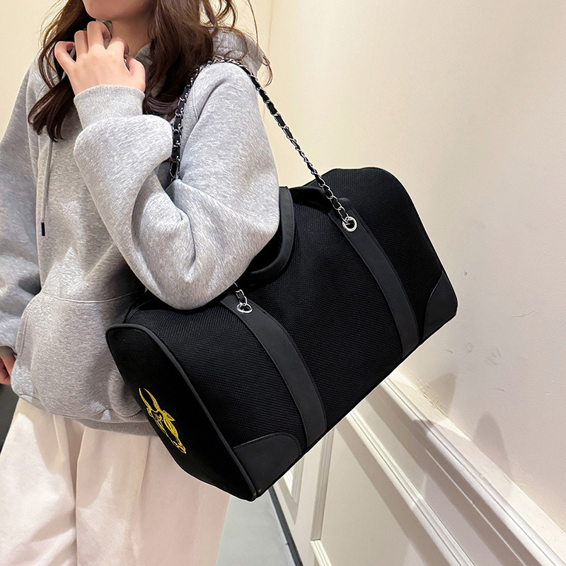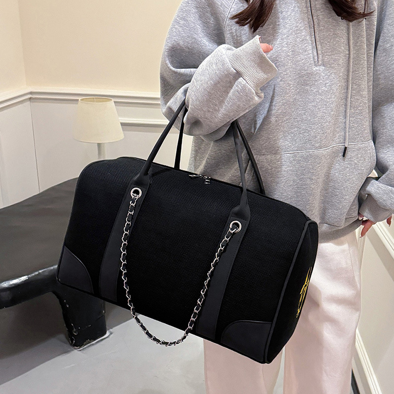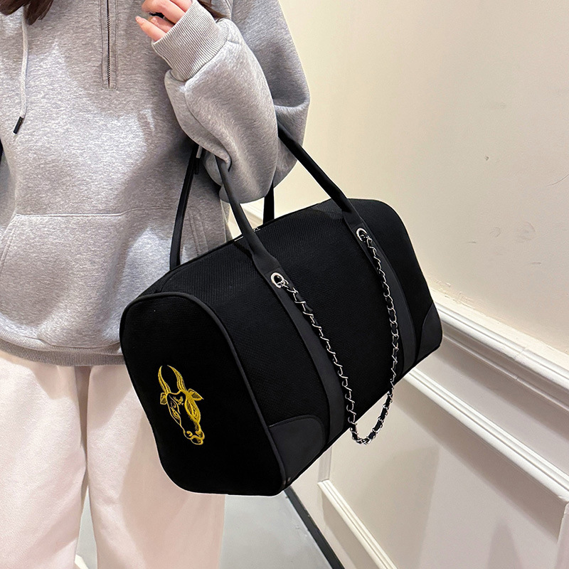 跨境新款2024大容量撞色帆布手提刺绣包女包通勤旅行大包单肩包潮