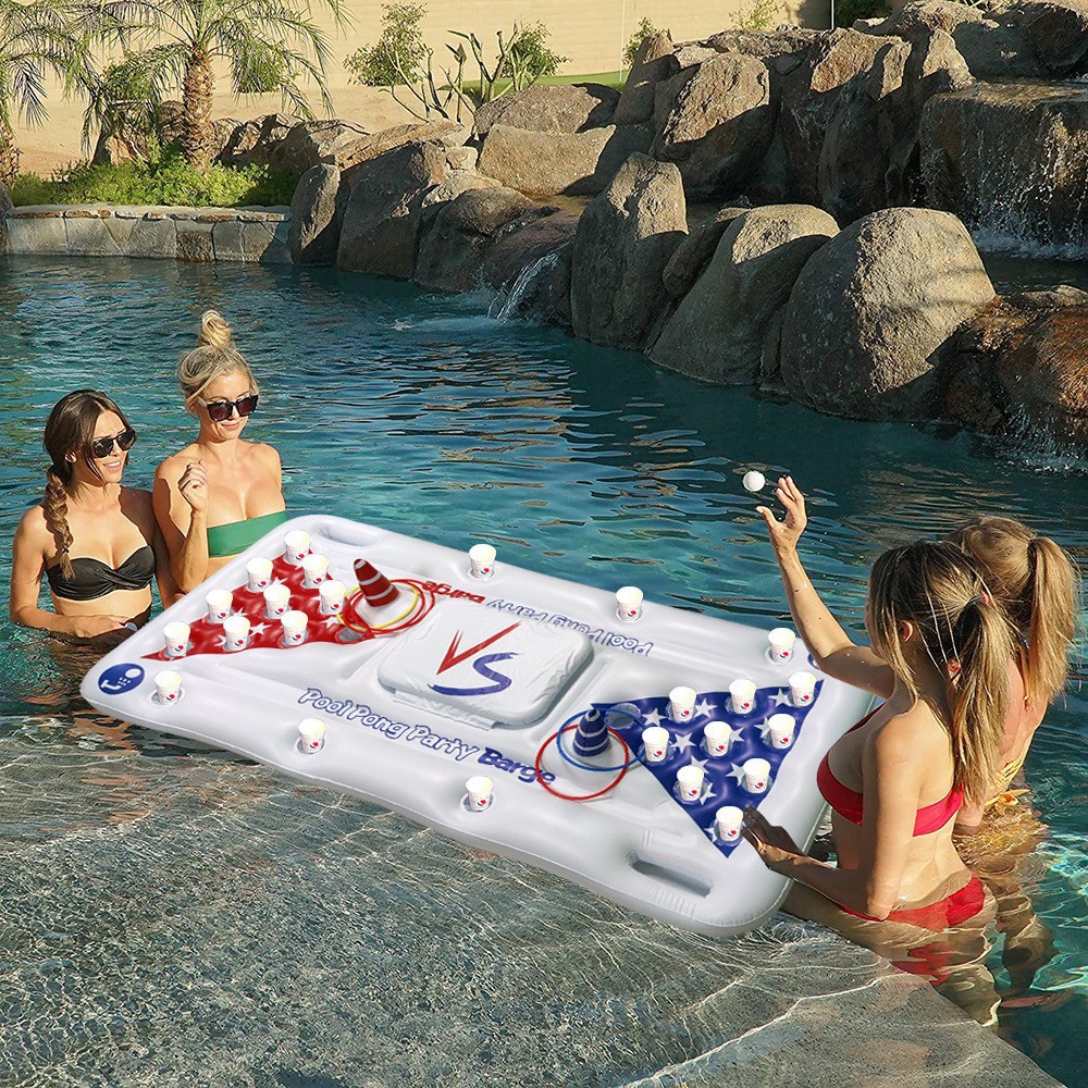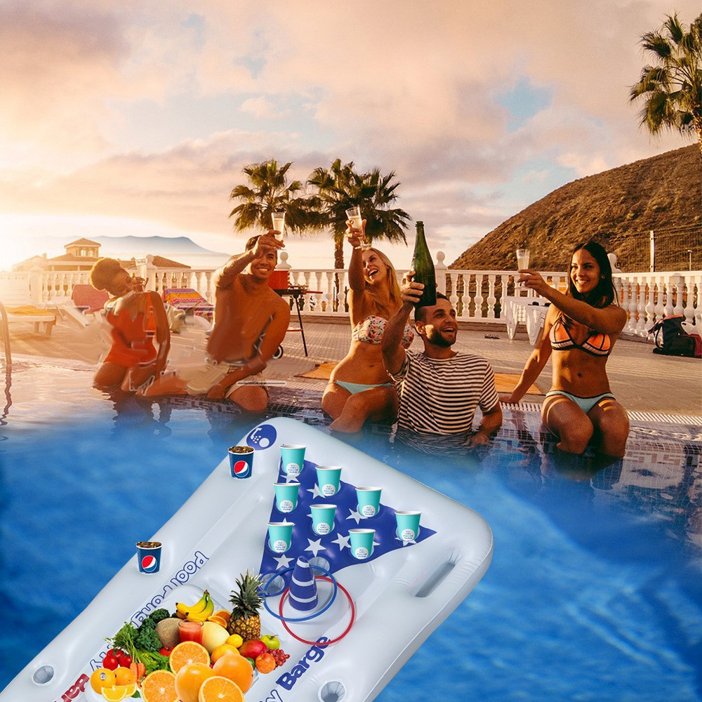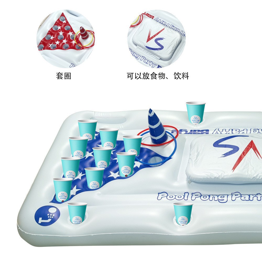 现货充气水上杯洞浮排泳池乒乓桌28可乐浮床啤酒桌冰槽休闲充气式