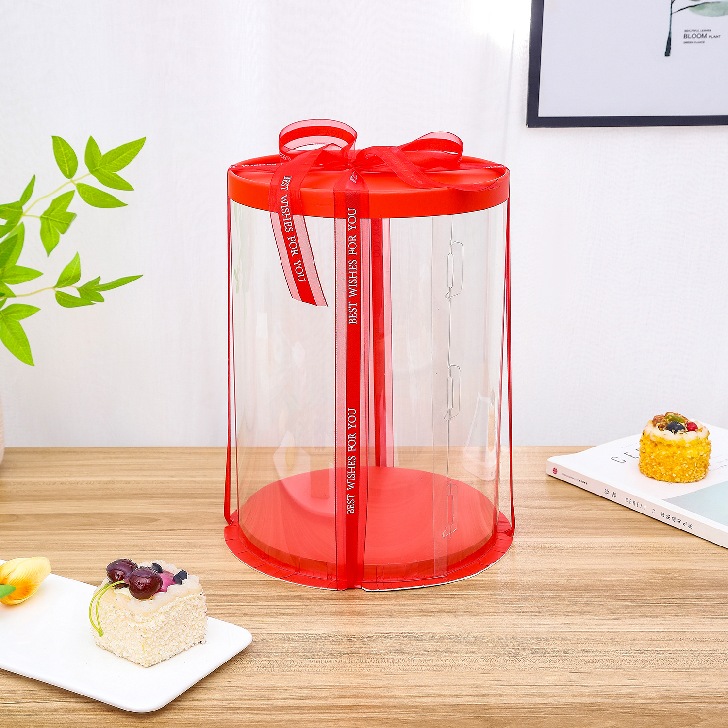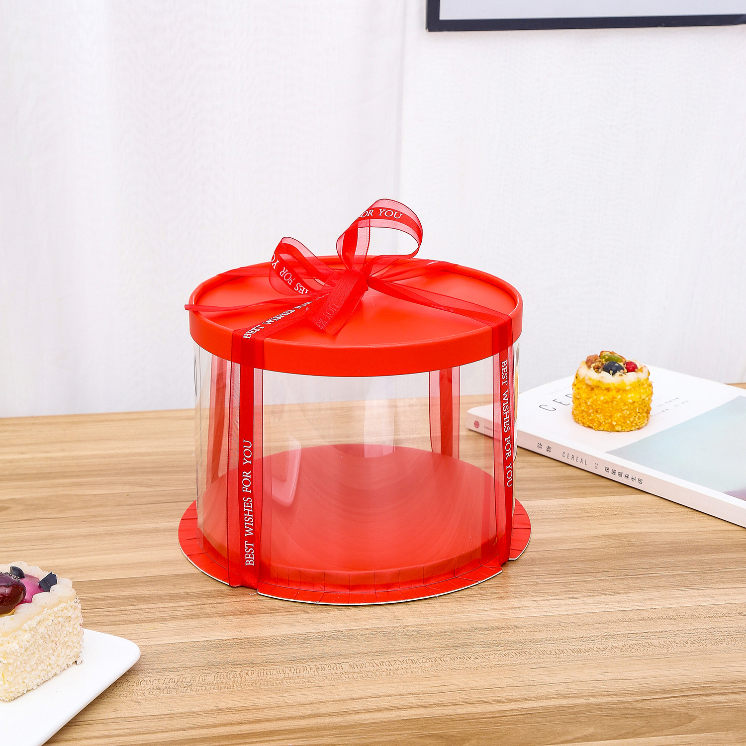 红色透明圆形蛋糕打包盒单双高三合一烘培烘焙包装盒甜品食品纸盒