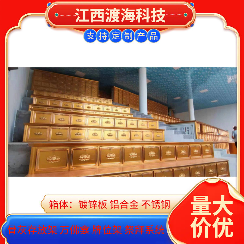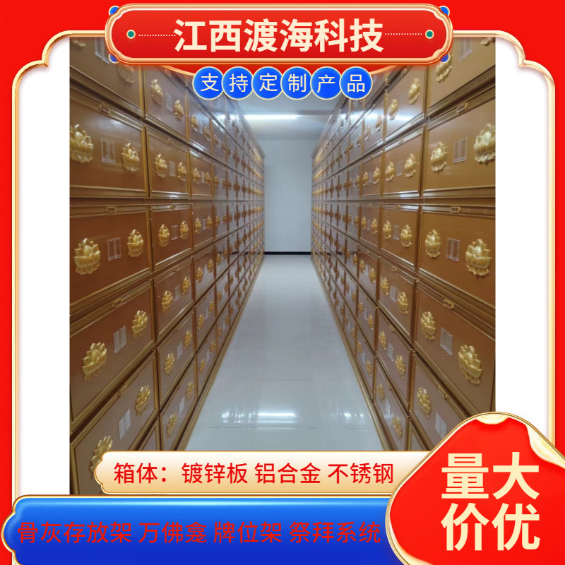 主营产品:骨灰存放架,骨灰盒寄存架,福寿架,万佛龛,牌位架,殡仪馆祭拜系统,寺院智能化管理系统、龙骨吊顶、智能骨灰寄存架