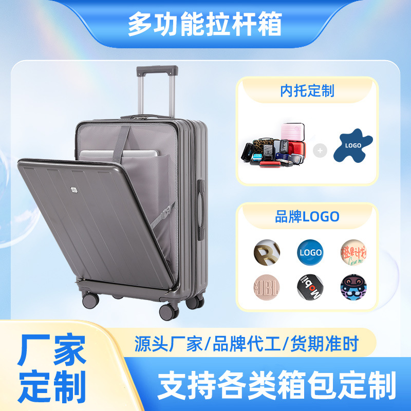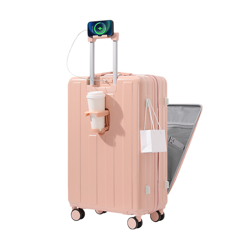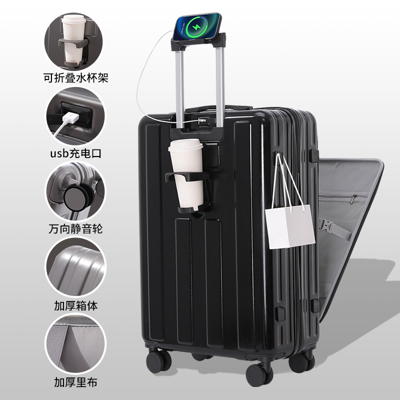 多功能杯架手机支架前开盖行李箱 2024新款24寸万向轮旅行拉杆箱