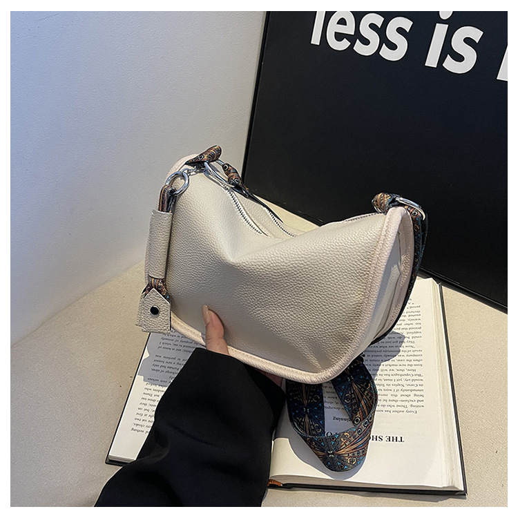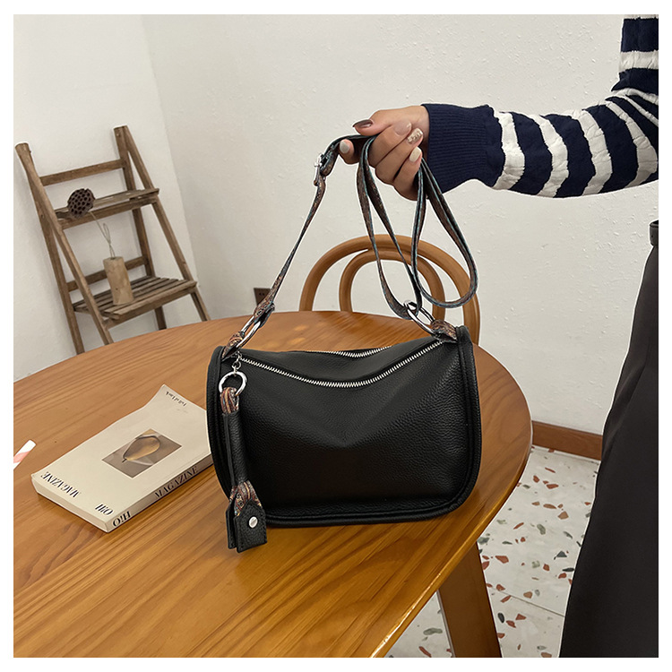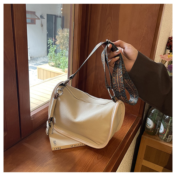 真皮女包月下月牙款百搭饺子包荔枝纹质感皮包大容量单肩斜挎包潮
