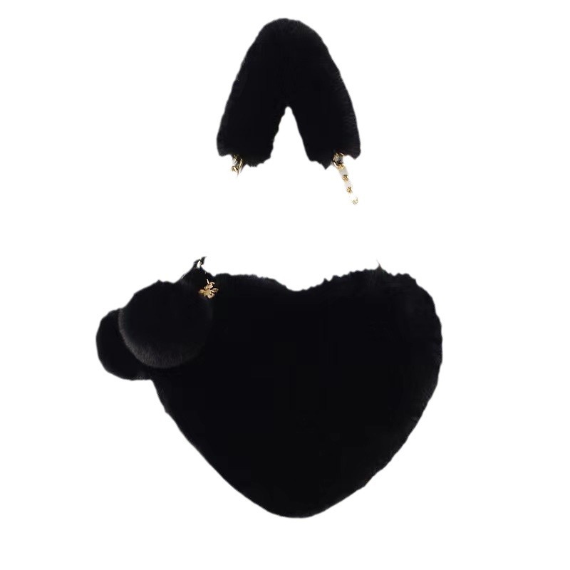 爱心手提包仿獭兔毛 毛茸茸单肩斜跨手机包 少女桃心毛绒链条包包