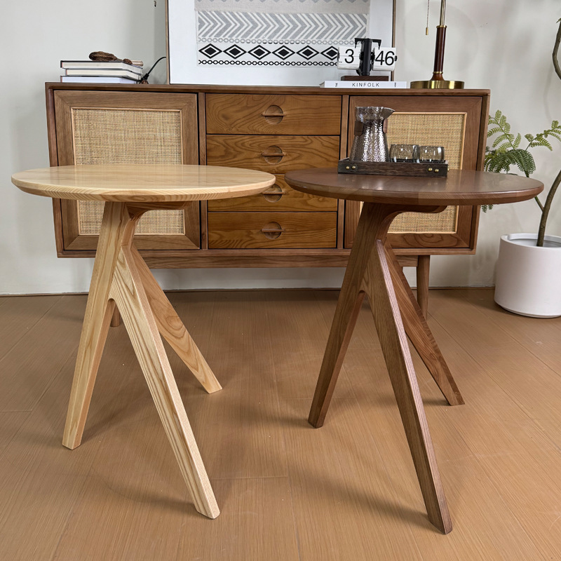 茶几客厅极简风圆形茶桌阳台泡茶桌全实木边桌子小户型侘寂几