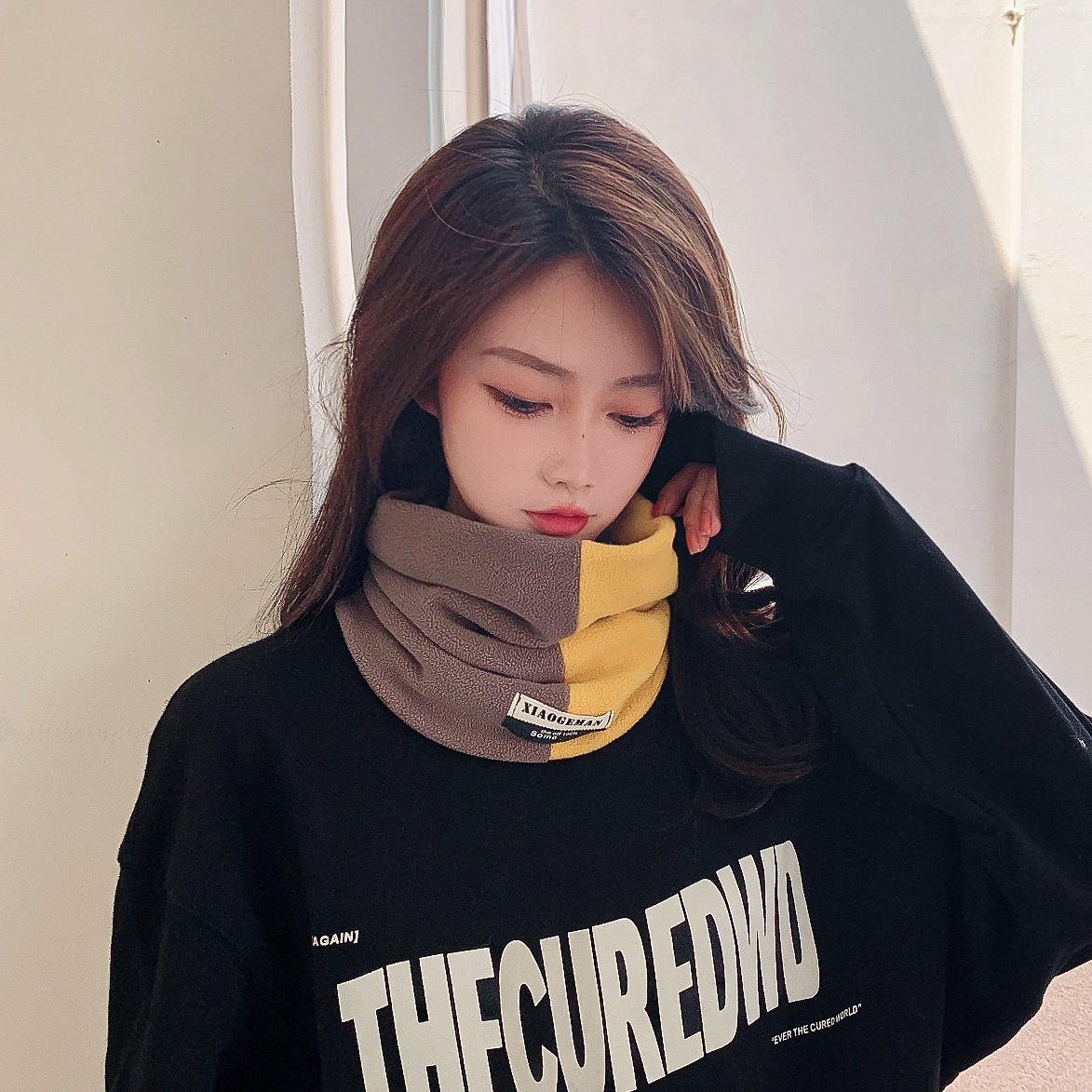 | 颜色 | 【深咖配黄】新升级 ∖ 奥利绒保暖围脖^_^ | 颜色 | 【黑配浅咖】新升级 ∖ 奥利绒保暖围脖^_^ |