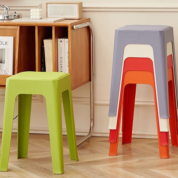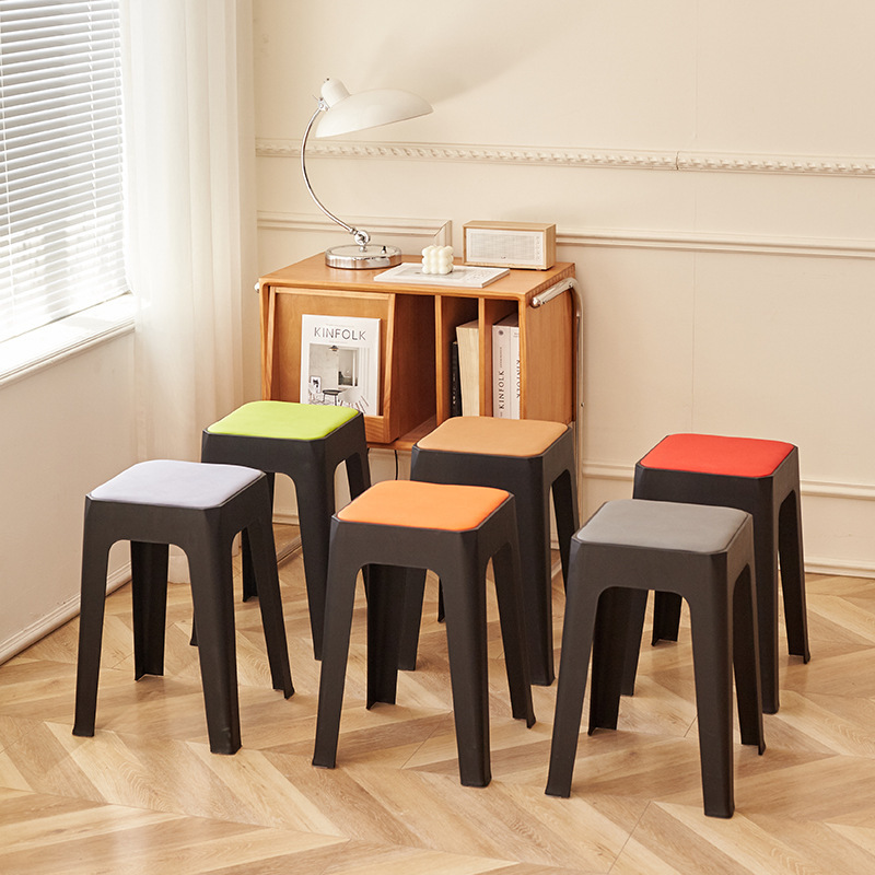 软包时尚方凳塑料凳子家用客厅餐桌高凳子可叠放北欧轻奢风凳子