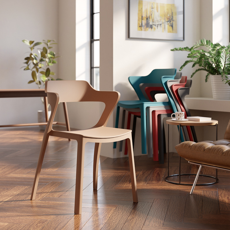 简约椅子中古复古休闲椅北欧靠背凳子轻便牛角餐桌椅塑料家用餐椅