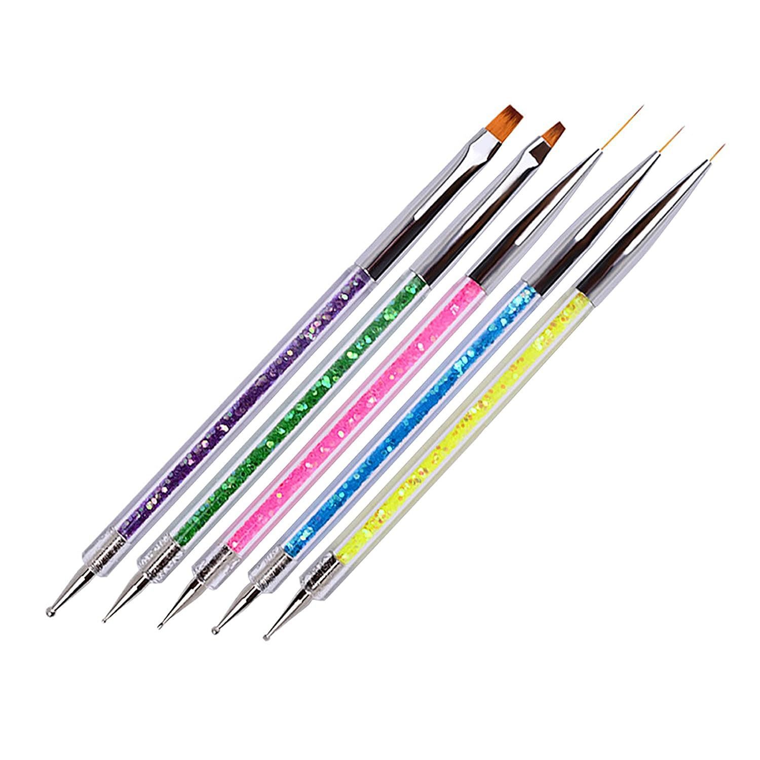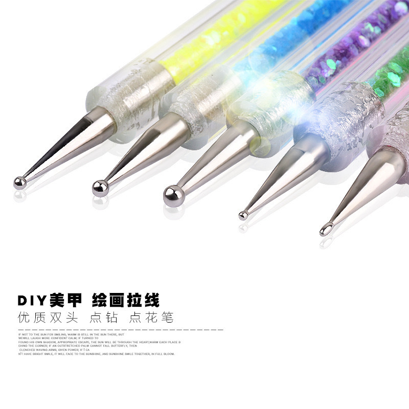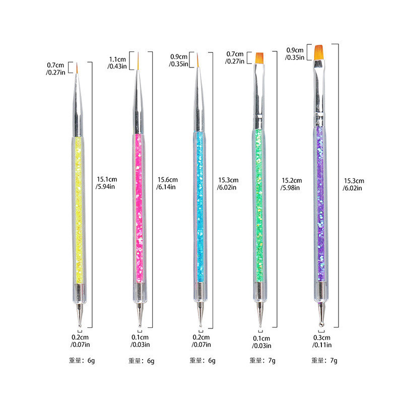跨境热销双头美甲笔刷套装亮片点珠点钻笔拉线光疗笔工具长杆设计