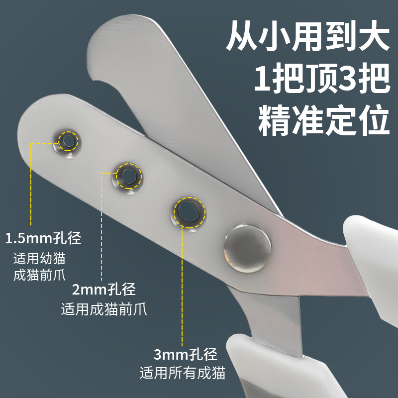 新圆孔防血位指甲剪 大小猫咪通用3孔小盲剪不锈钢宠物剪猫指甲钳