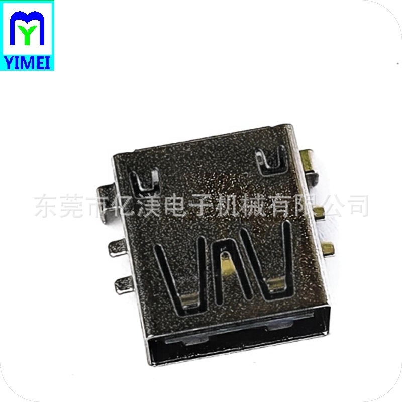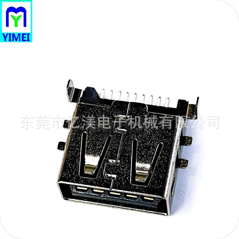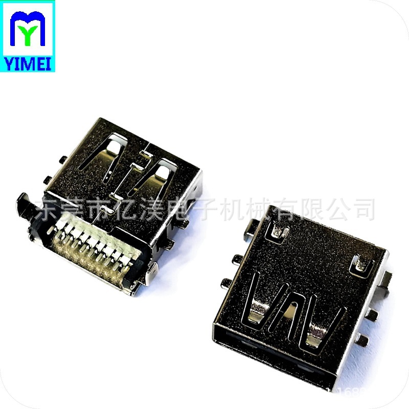 USB3.0连接器AF母座沉板3.5 无卷边U3 A母沉板3.5黑胶六只脚