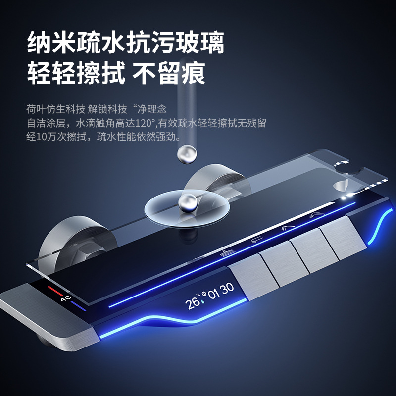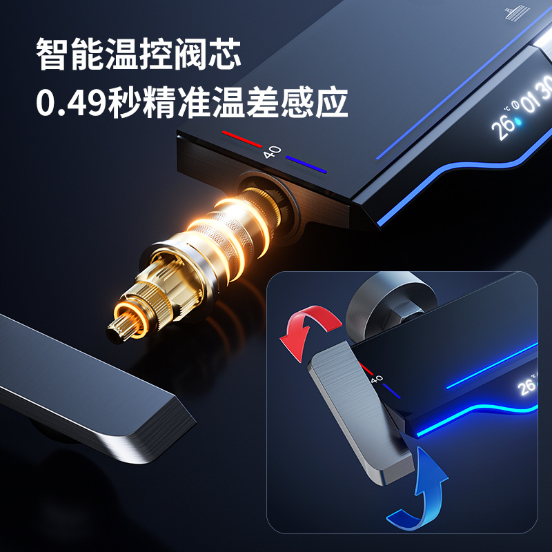 箭᷂牌恒温瀑布花洒套装数显LED空气增压超跑级烤漆精铜淋浴喷头