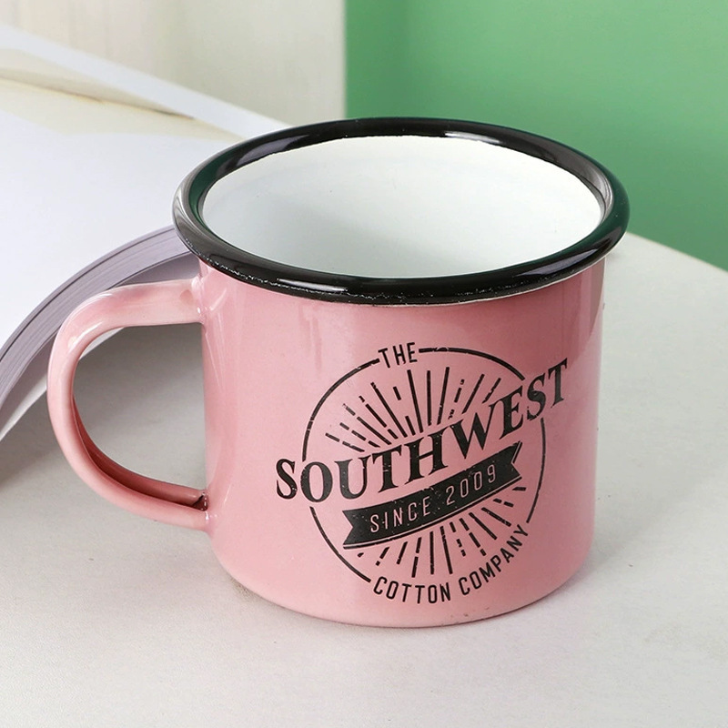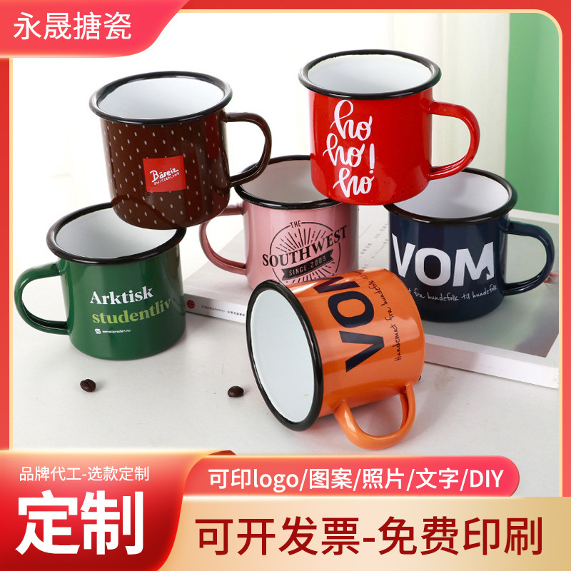 彩色包边搪瓷杯 老式铁茶缸可印制logo复古怀旧马克杯批发
