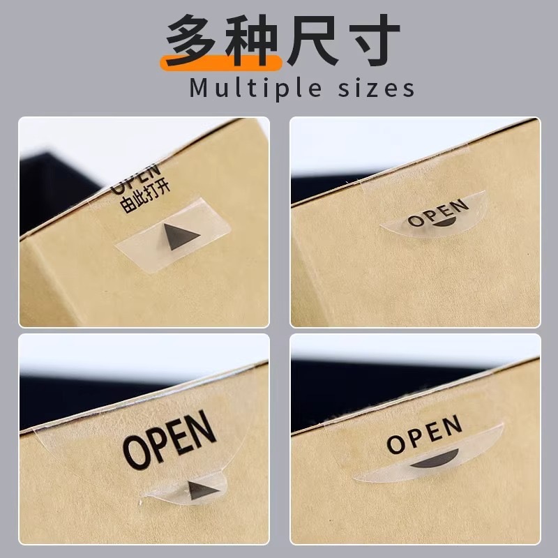 open封口不干胶长条除胶区易撕拉封口贴外卖贴纸间隔半胶尾部无胶