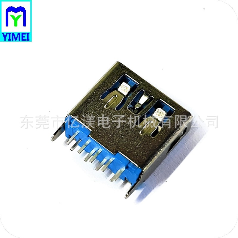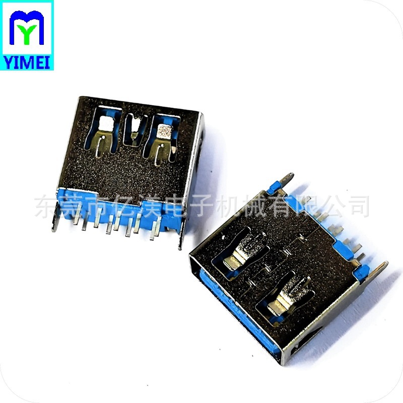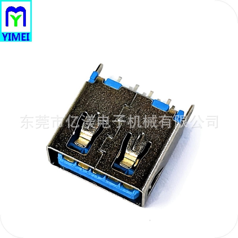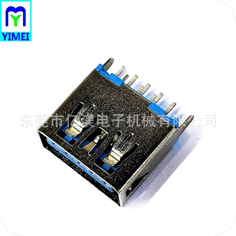 USB3.0连接器 AF母座180度DIP插板式蓝胶A母L11.5无边直脚蓝胶DIP