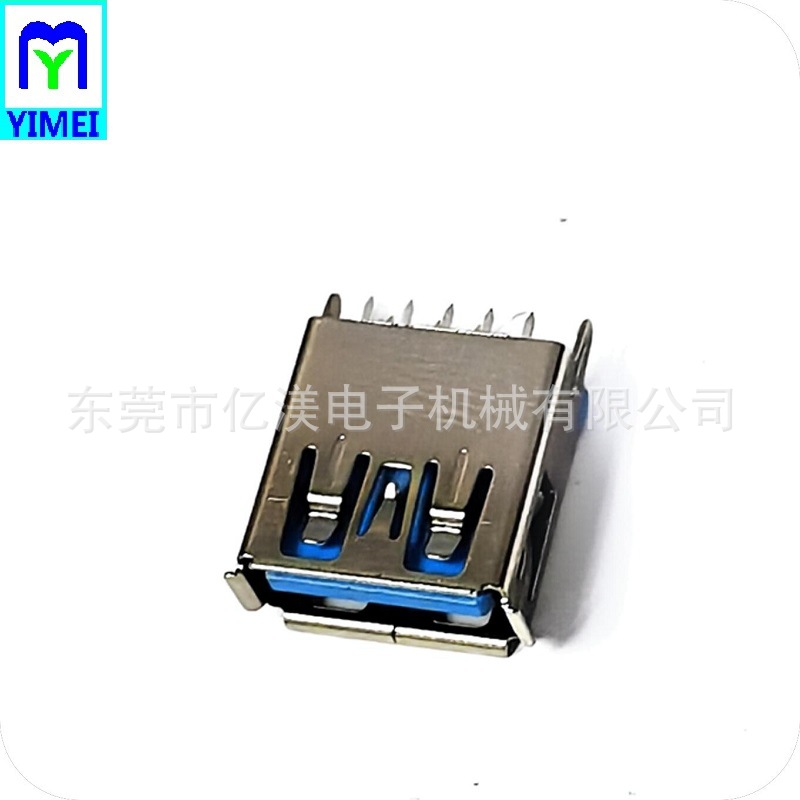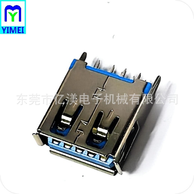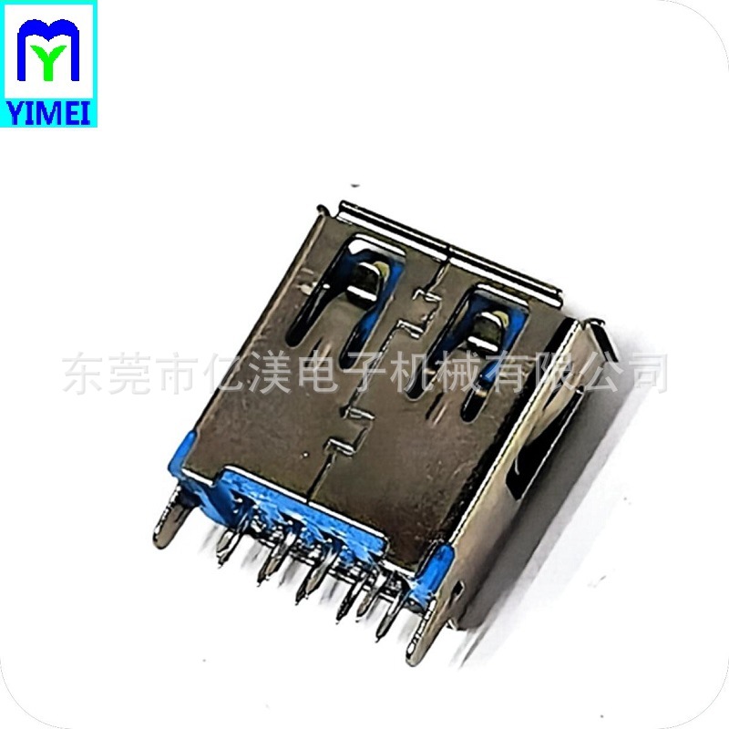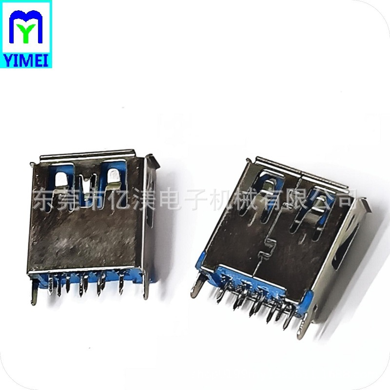 USB3.0连接器 AF母座180度DIP插针款蓝胶A母插板式L13.7卷边铜壳