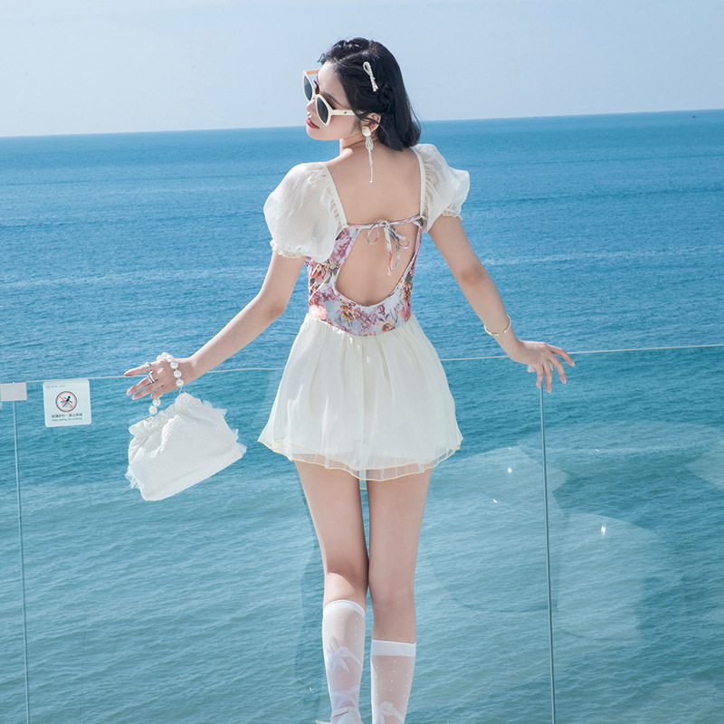 2025新款游泳衣女连体平角保守显瘦仙气蕾丝性感学院风复制泳装