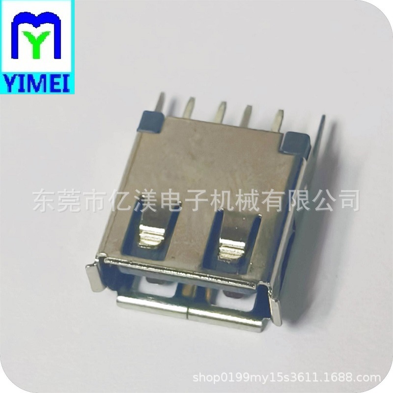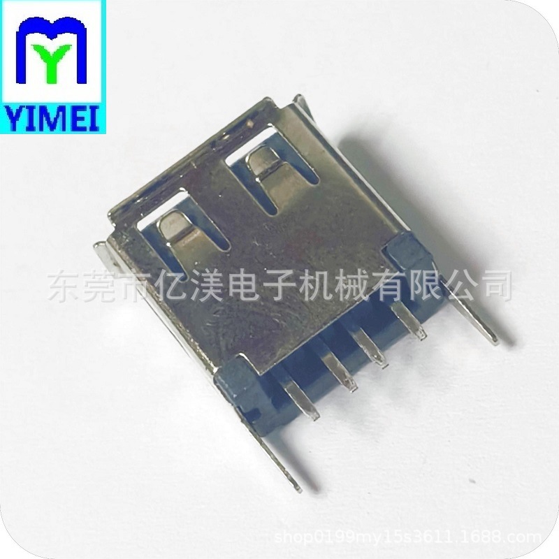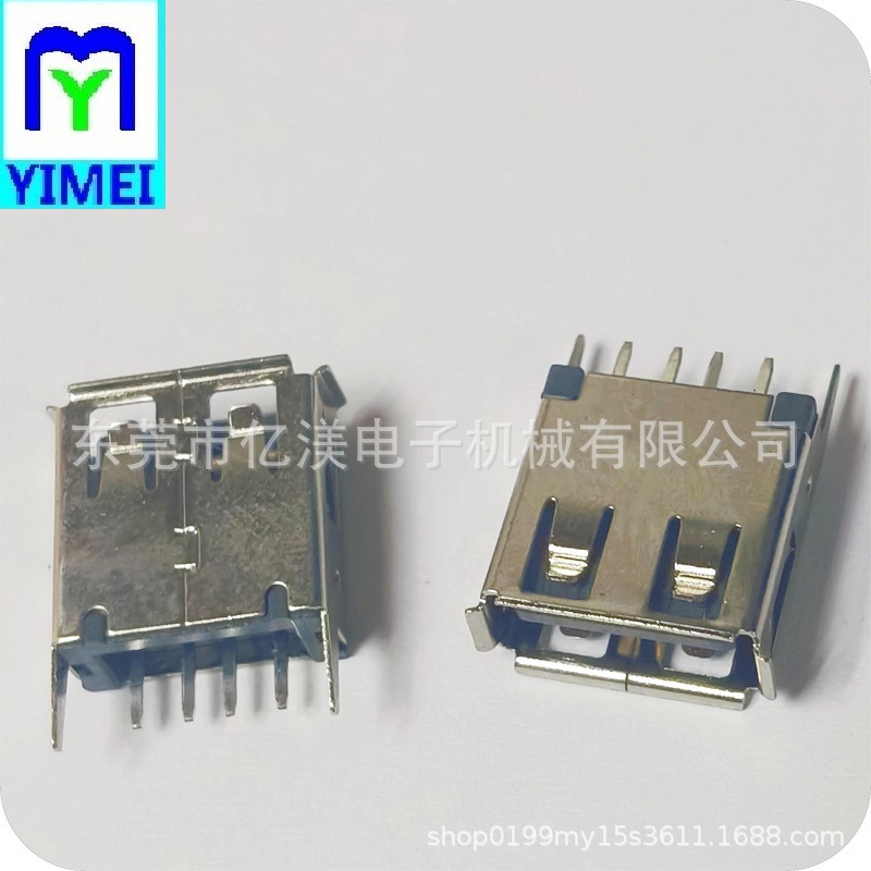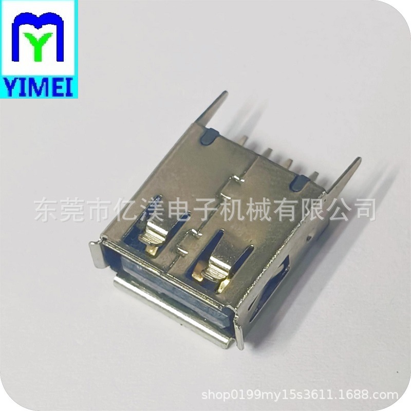 USB2.0连接器 AF母座180度DIP插板式黑胶A母卷边直脚黑胶直插DIP