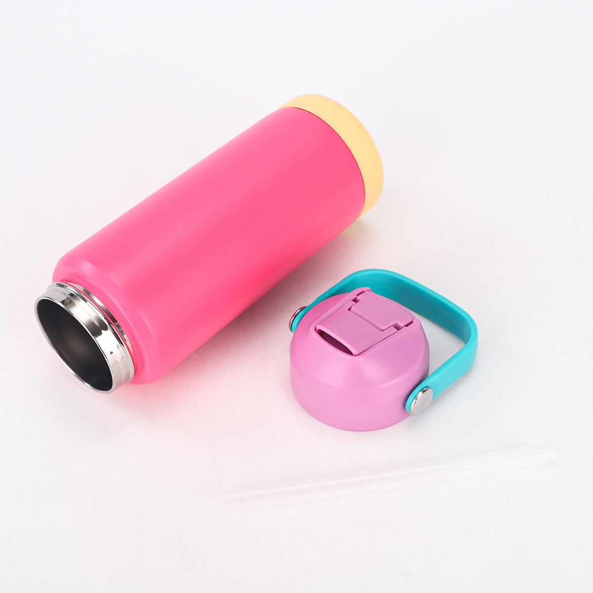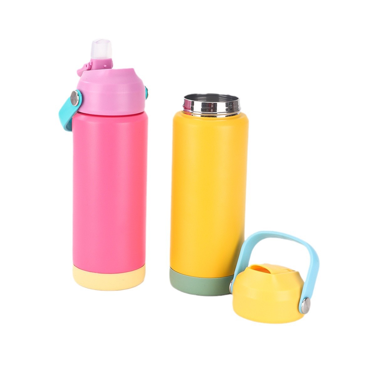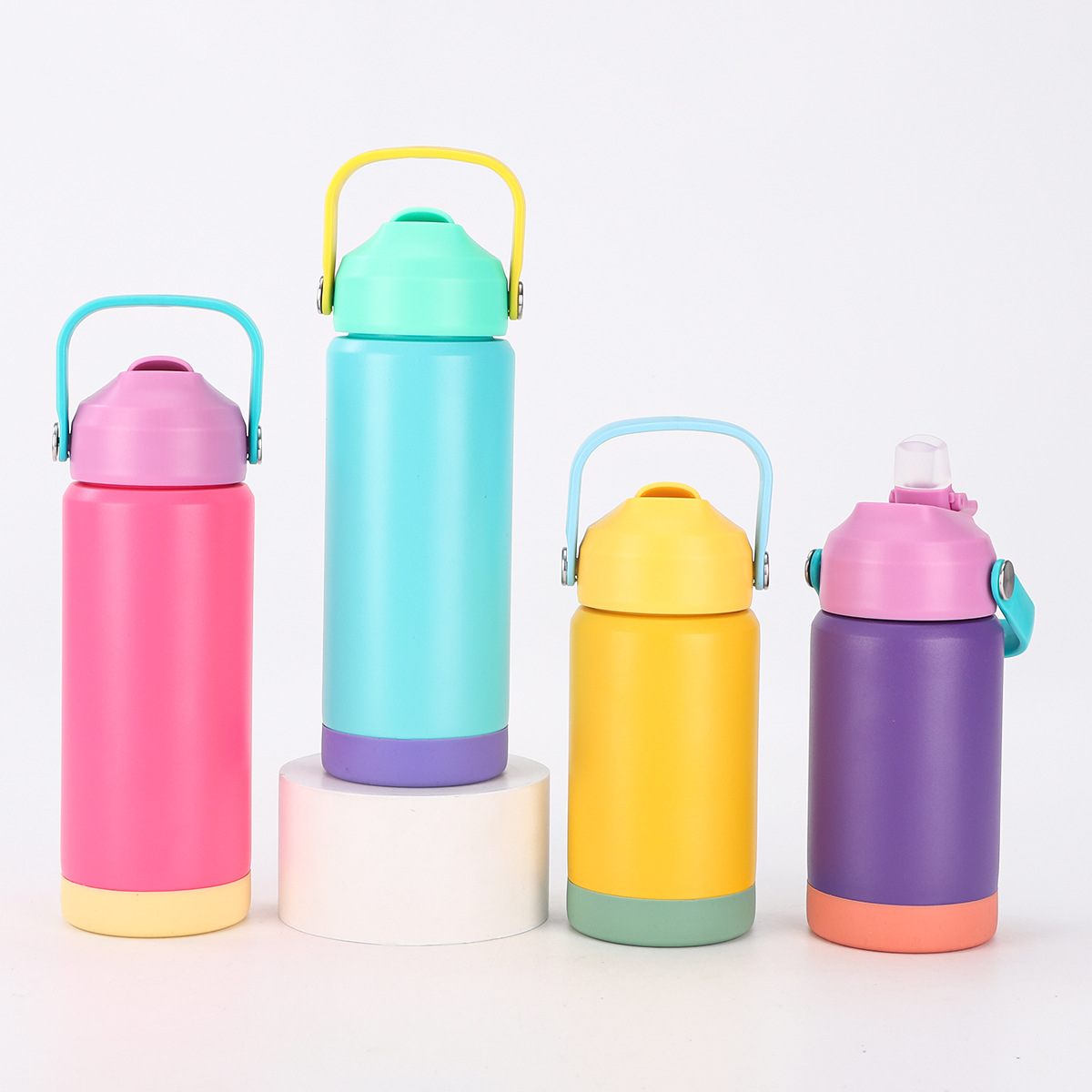 跨境新款304不锈钢马卡龙保温杯纯色儿童真空带提手便携太空壶