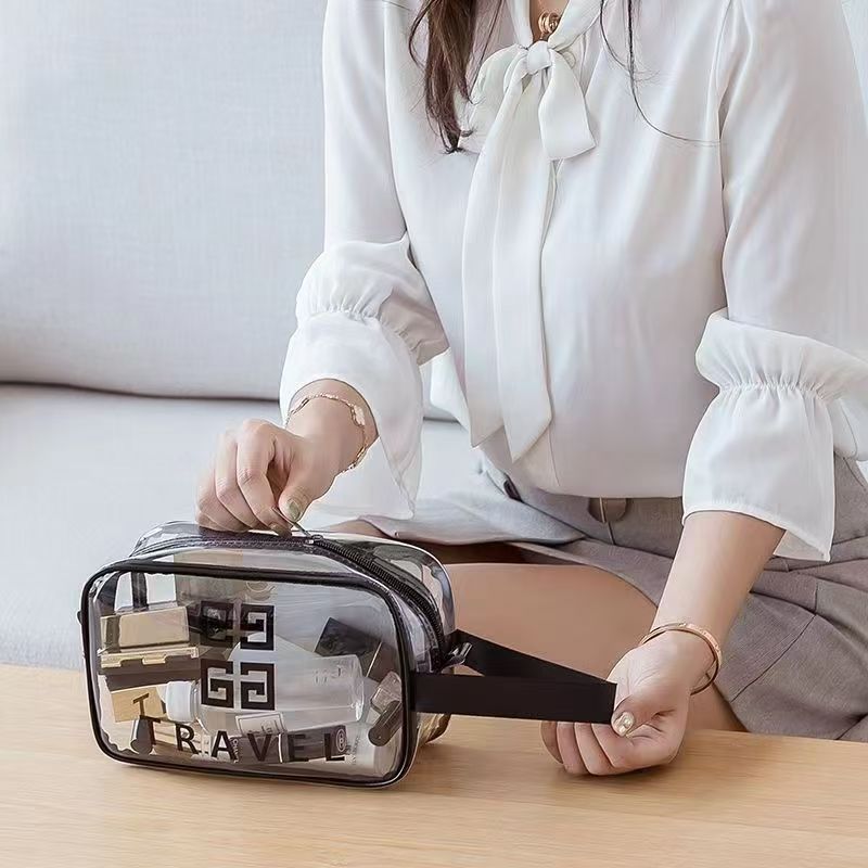 定制透明PVC单层化妆包 防水洗澡游泳包包 便携小手提袋