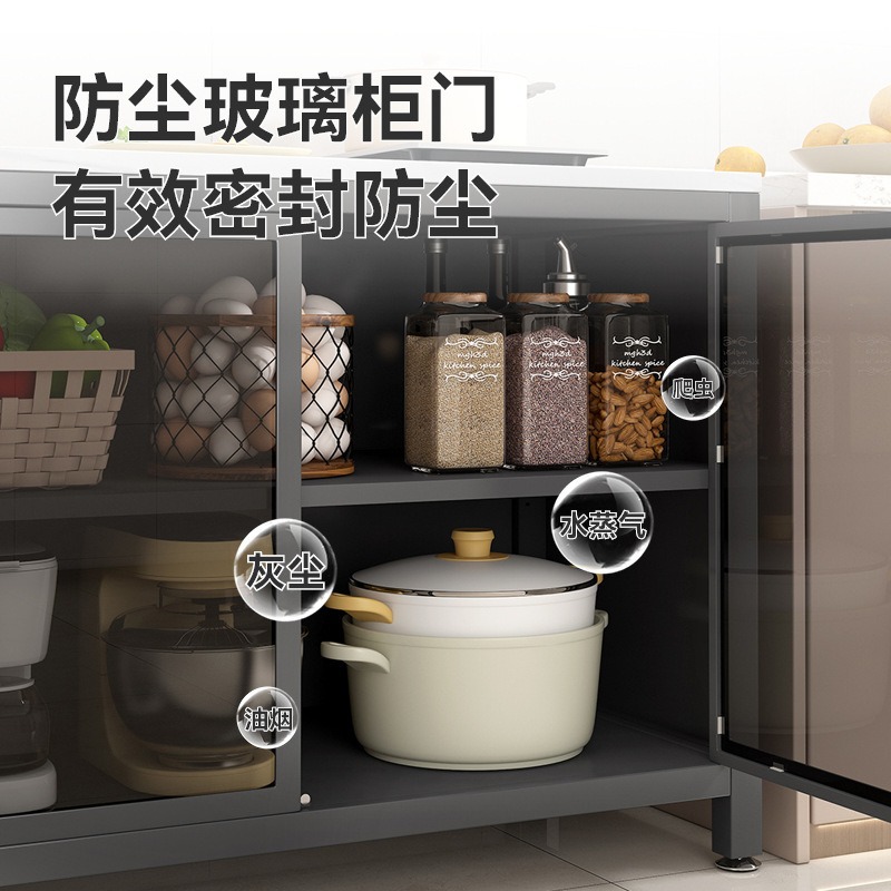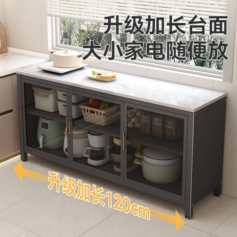 厨房落地置物架家用多层岩板切菜桌餐边柜微波炉烤箱碗筷储物橱柜