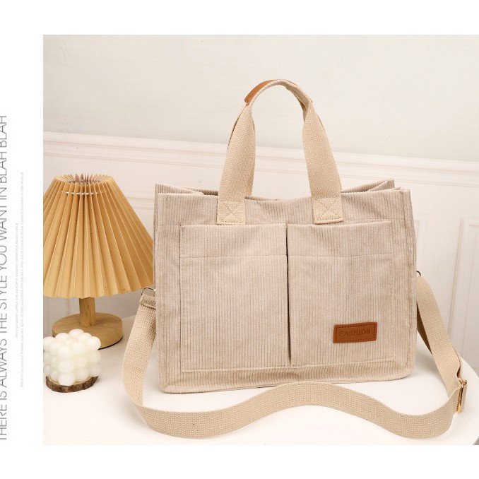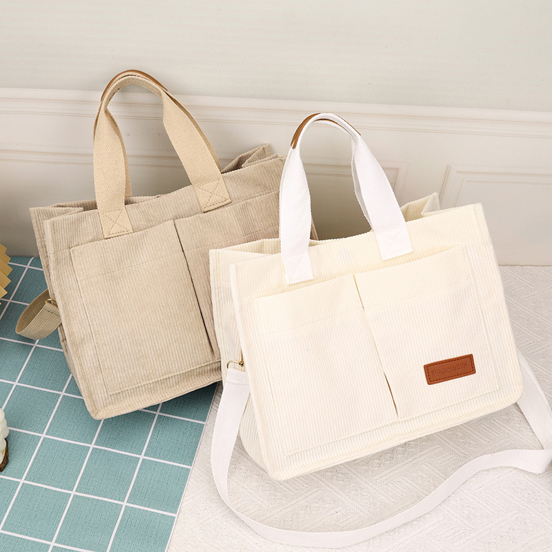 2024新款大容量单肩包通勤手提托特包女百搭条绒潮宽肩带斜挎包包
