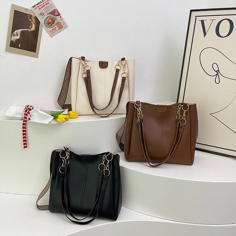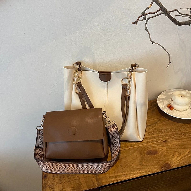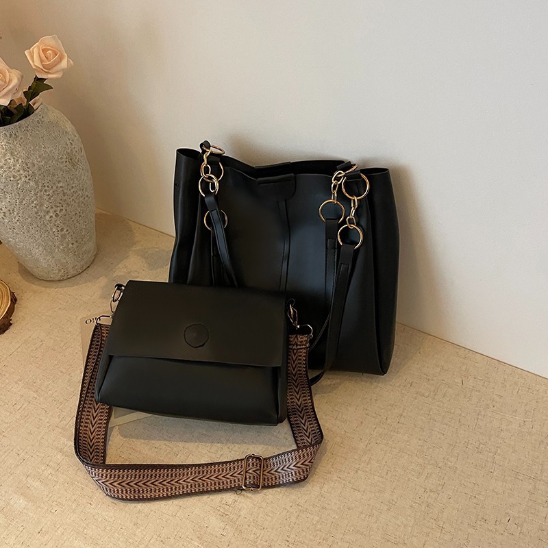 2024新款潮流通勤纯色简约休闲单肩托特包包女两件套大容量冬季