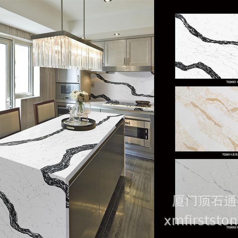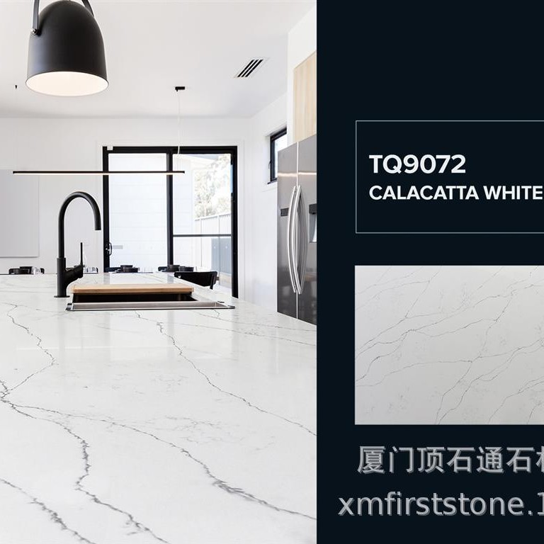 人造零硅石英石卡拉拉白台面厂家批发定 制整体式厨房石英石台面