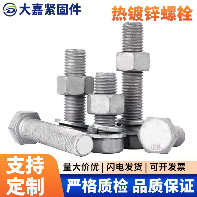 厂家现货热镀锌螺栓螺母热浸锌外六角螺丝光伏电力全扣螺杆