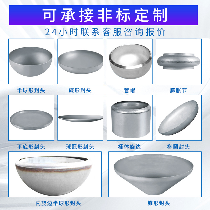 球冠封头304不锈钢大口径管帽不锈钢球形平底封头半球形椭封头