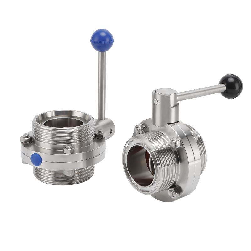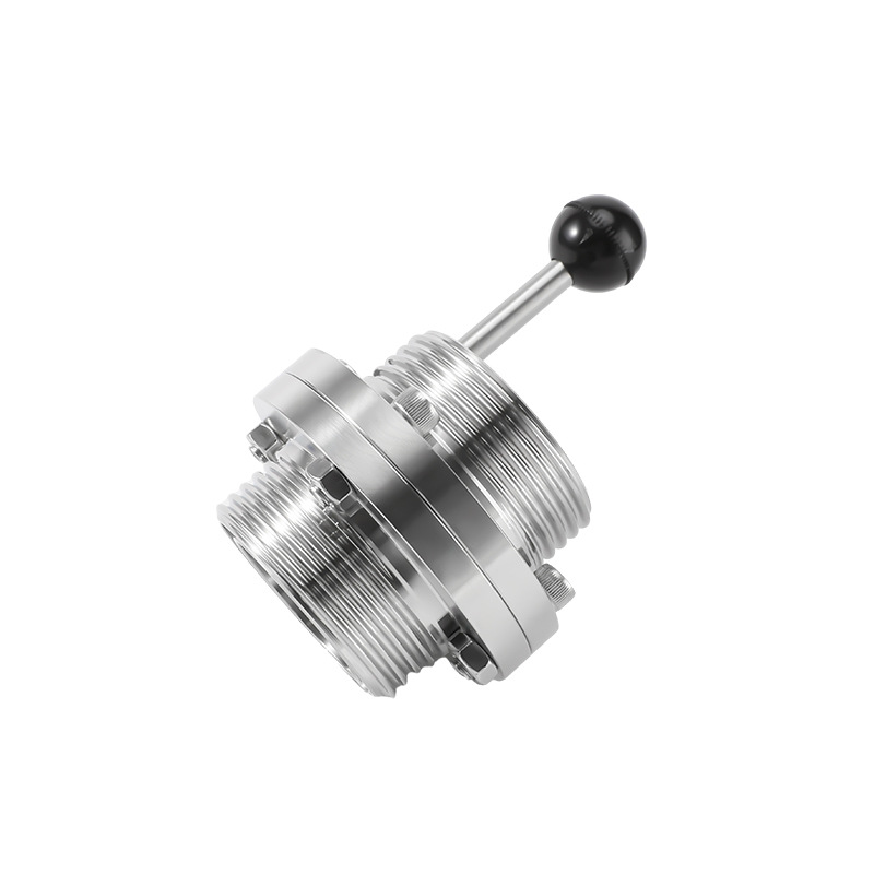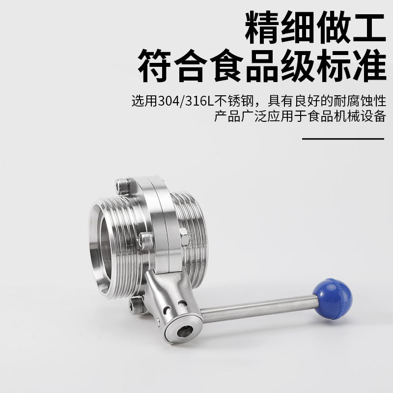 外螺纹活接蝶阀304不锈钢卫生食品级T型手动外丝蝶阀拉杆活接阀